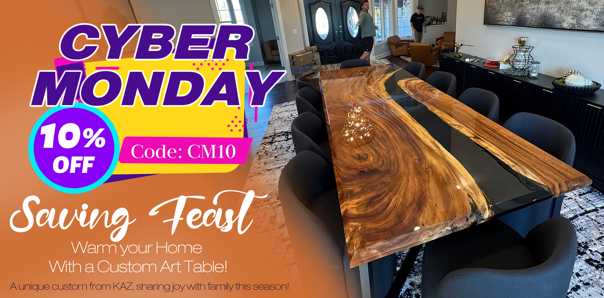KAZANA HOME specializes in crafting premium epoxy resin tables and solid wood tables, with large slab designs at the heart of our craftsmanship. Serving the entire continental United States, we combine 15+ years of expertise with an unwavering commitment to quality, sustainability, and artistry.