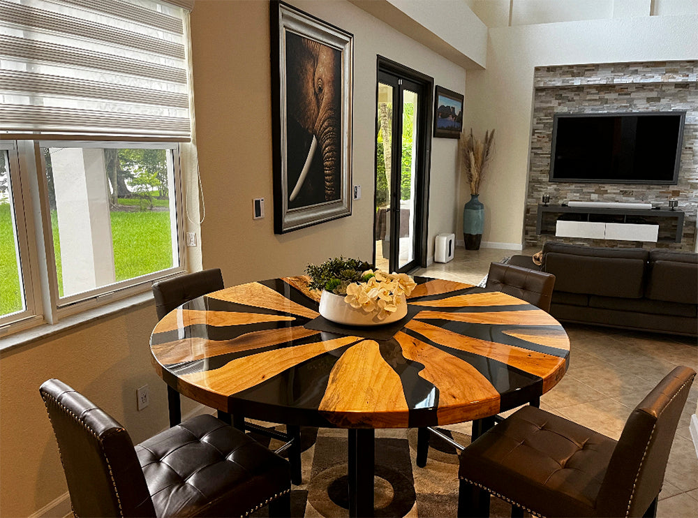 KAZANA HOME specializes in crafting premium epoxy resin tables and solid wood tables, with large slab designs at the heart of our craftsmanship. Serving the entire continental United States, we combine 15+ years of expertise with an unwavering commitment to quality, sustainability, and artistry.