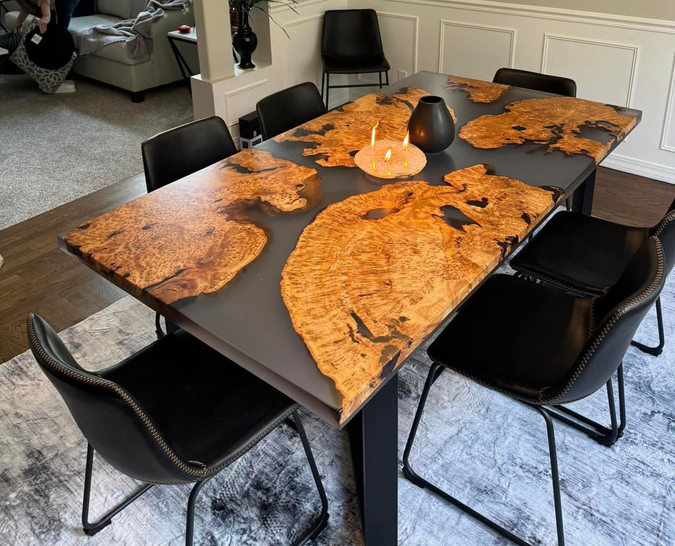 Since we exclusively use natural wood and resin, each epoxy table is a unique masterpiece that cannot be replicated to match reference images exactly. The soul of your table lies in its distinctive grain patterns, organic textures, and the story of the wood itself - shaped by years of growth under varying sunlight, climate, and soil conditions. Even within the same tree, no two sections share identical characteristics.